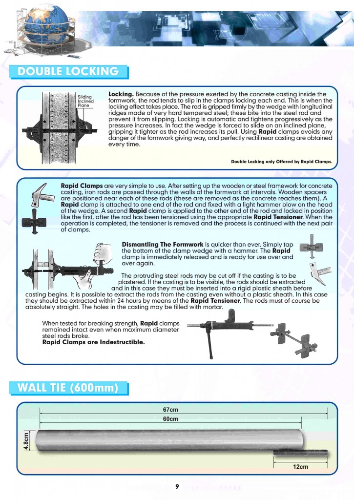 In fact, the wedge is forced to slide on an inclined plane, gripping it tighter as the rod increases its pull. Using RAPID clamps avoids any danger of the formwork giving way and perfectly rectilinear casting are obtained every time.